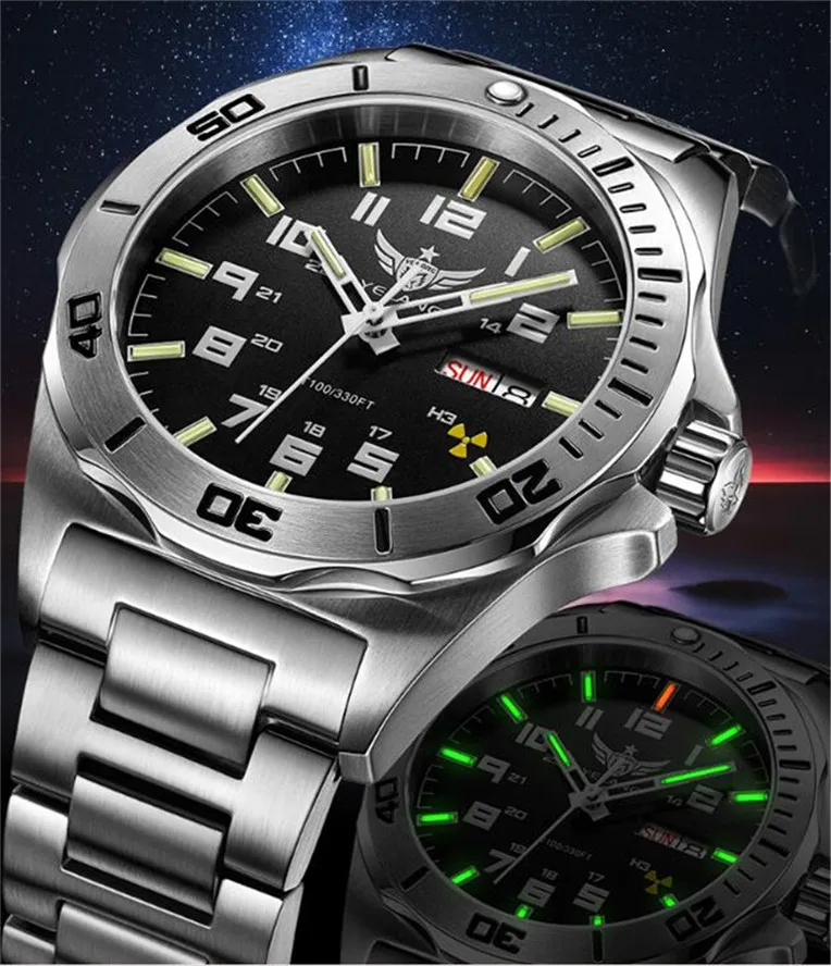 Product Name: Reloj mecánico automático para hombres de Yelang Tritium T100 Japón movimiento superior 24 joyas de zafiro Dial giratorio WR100M reloj de buceo