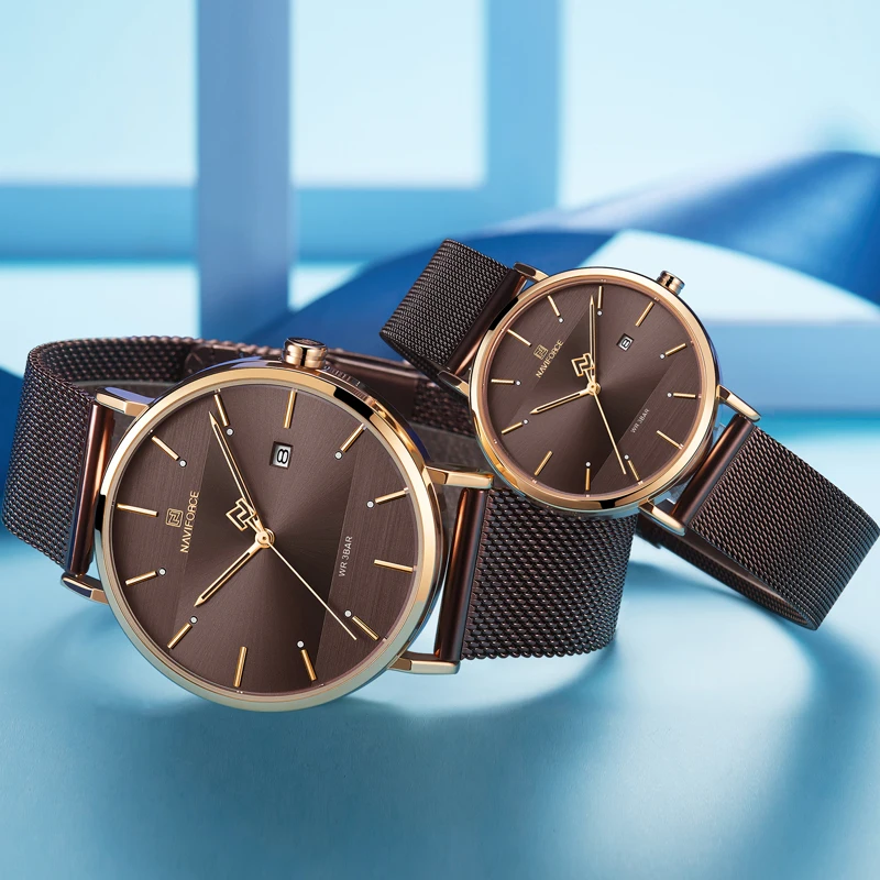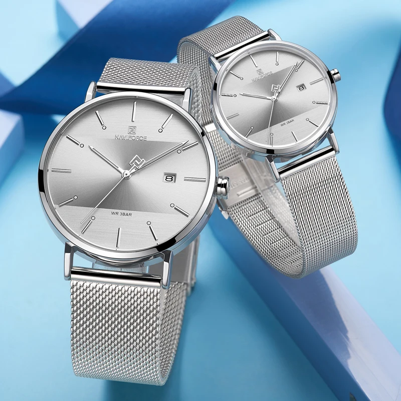 Special Offer Par de relojes NAVIFORCE marca superior de acero inoxidable reloj de pulsera de cuarzo para hombres y mujeres moda Casual reloj conjunto de regalos para la venta Discount 58% Today!