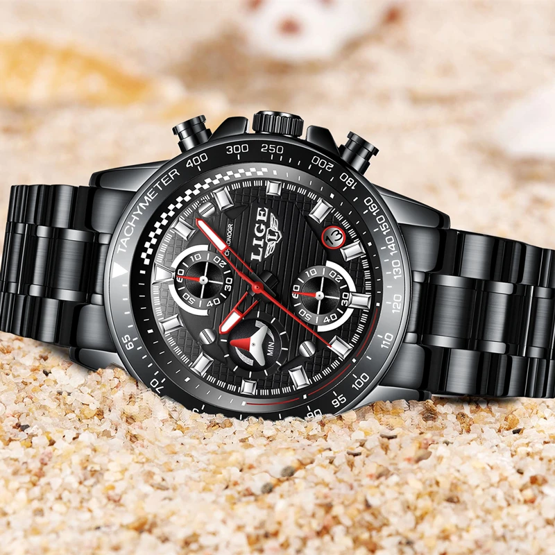 Product Name: Relojes LIGE para hombres, reloj de acero completo de lujo, reloj deportivo de cuarzo para hombres, reloj informal impermeable de negocios, reloj Masculino