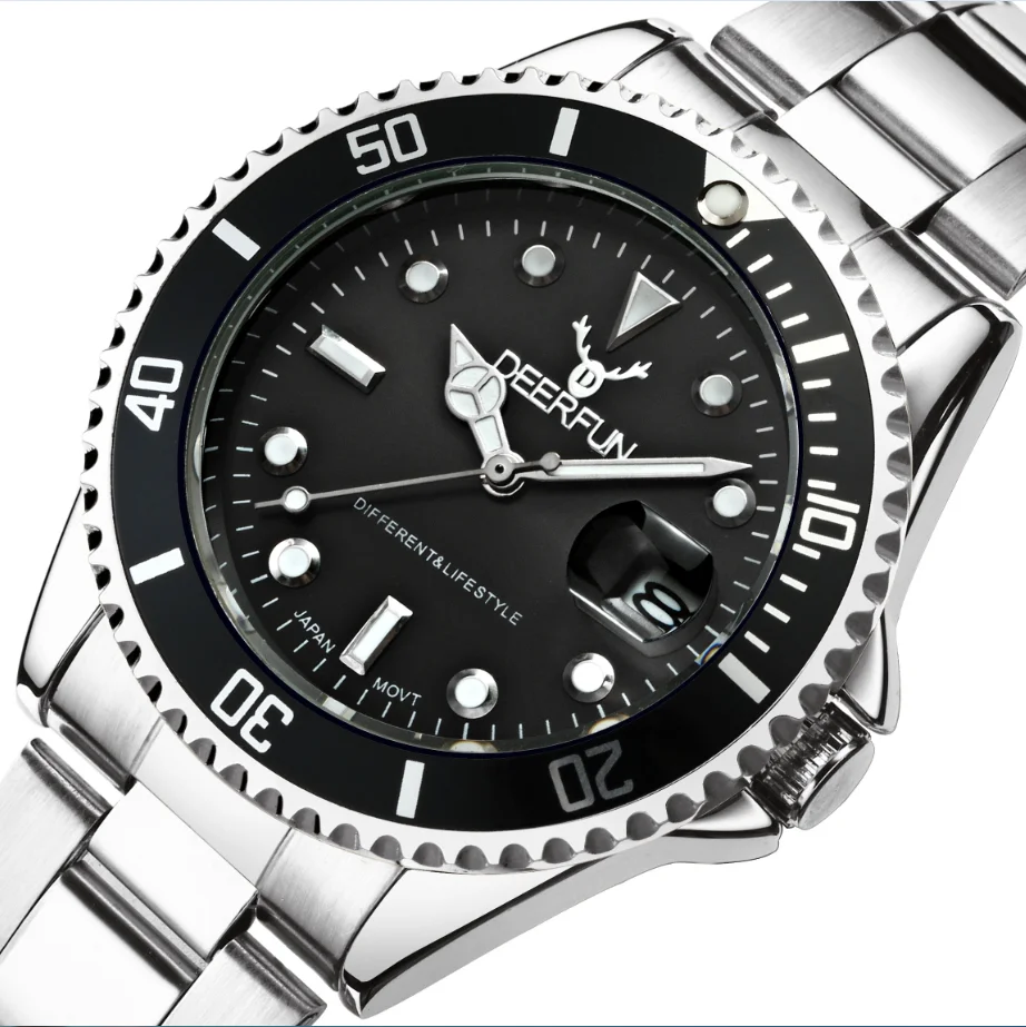 Special Offer DEERFUN reloj de oro GMT bisel giratorio cristal de zafiro banda de acero inoxidable reloj de pulsera de cuarzo deportivo reloj 40MM Discount 0% Today!