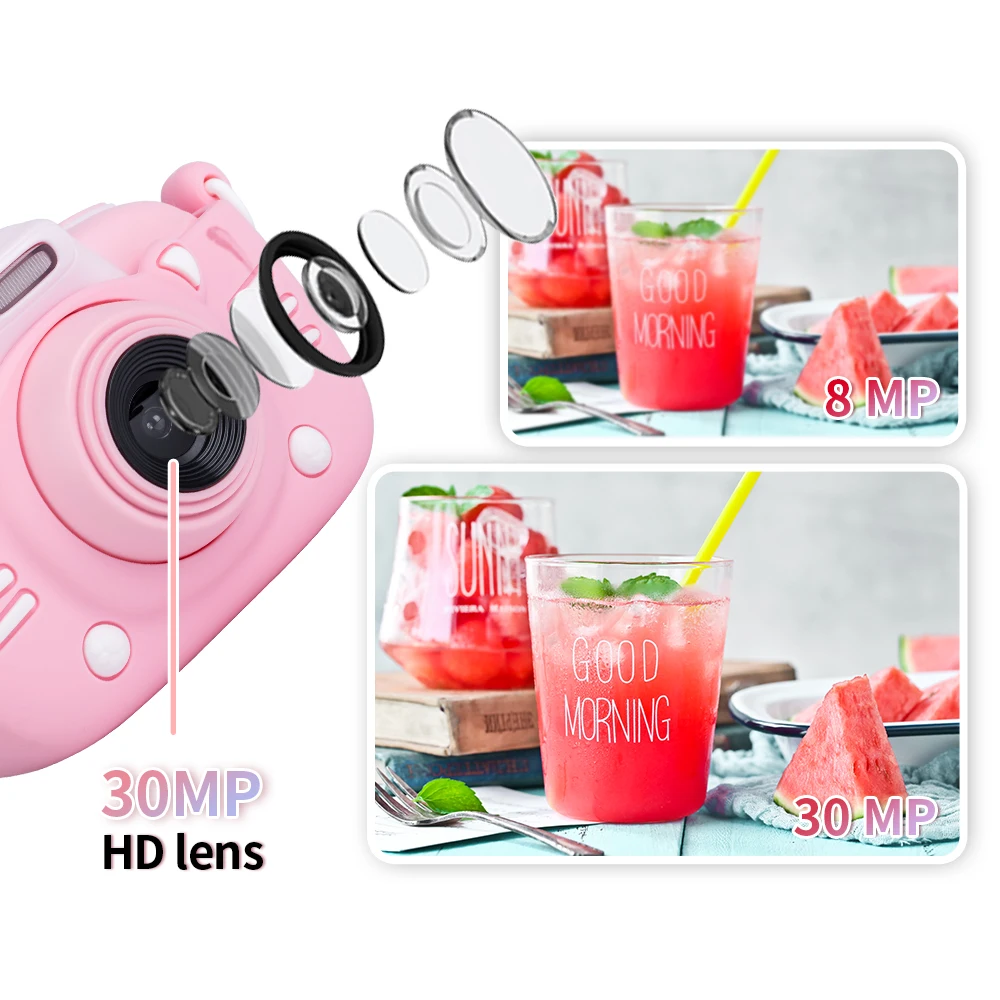 Product Name: Cámara Digital para niños 30MP 2,4 pulgadas IPS pantalla 1080P HD Video Selfie Mini SLR chico juguete cámara para regalos de Año Nuevo Minibear