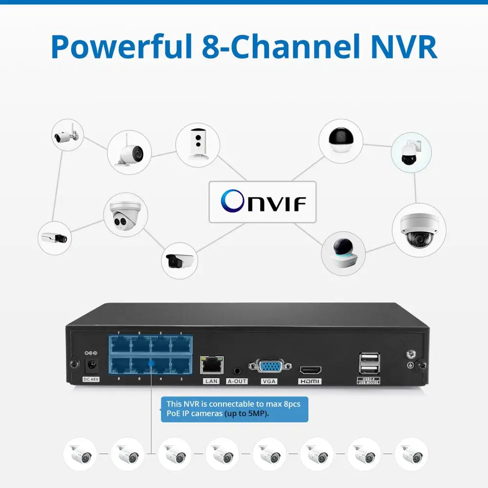Product Name: SANNCE 8CH POE 5M NVR Kit CCTV sistema de seguridad 2MP IR exterior impermeable cámara IP con micrófono Audio registro video de Vigilancia Conjunto
