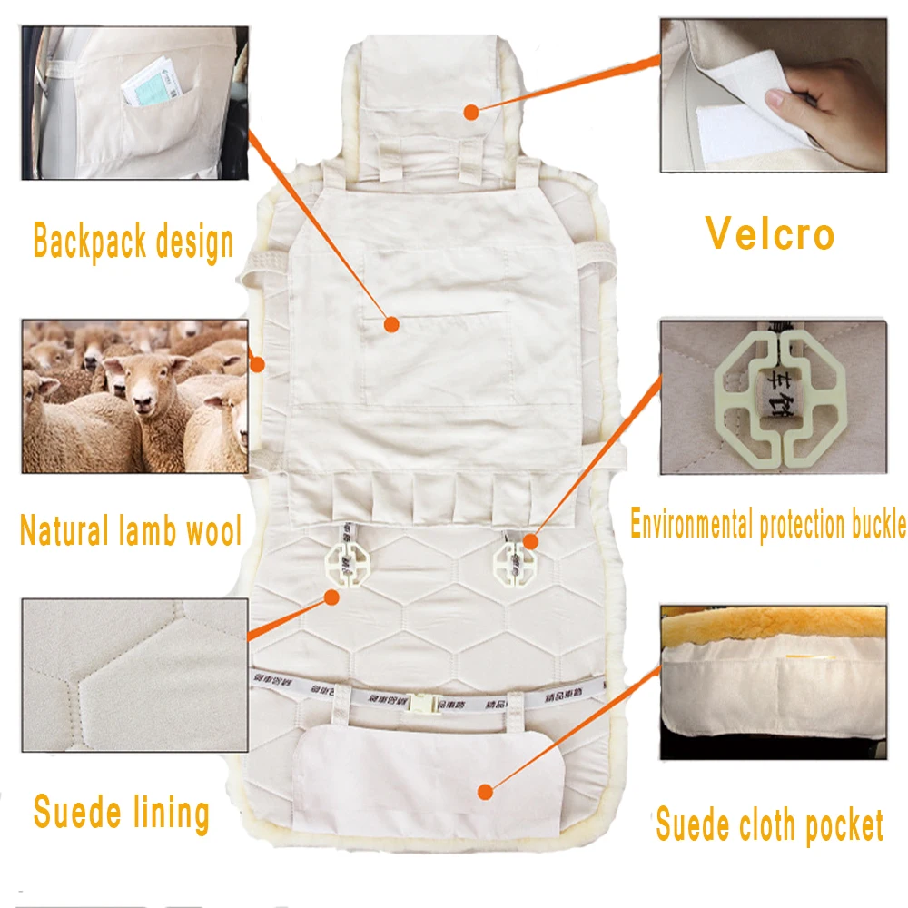 Product Name: Asiento de coche funda cálida hecha a mano funda de piel de cuero de invierno asiento cálido Interior de coche cojín suave accesorios interiores de automóvil