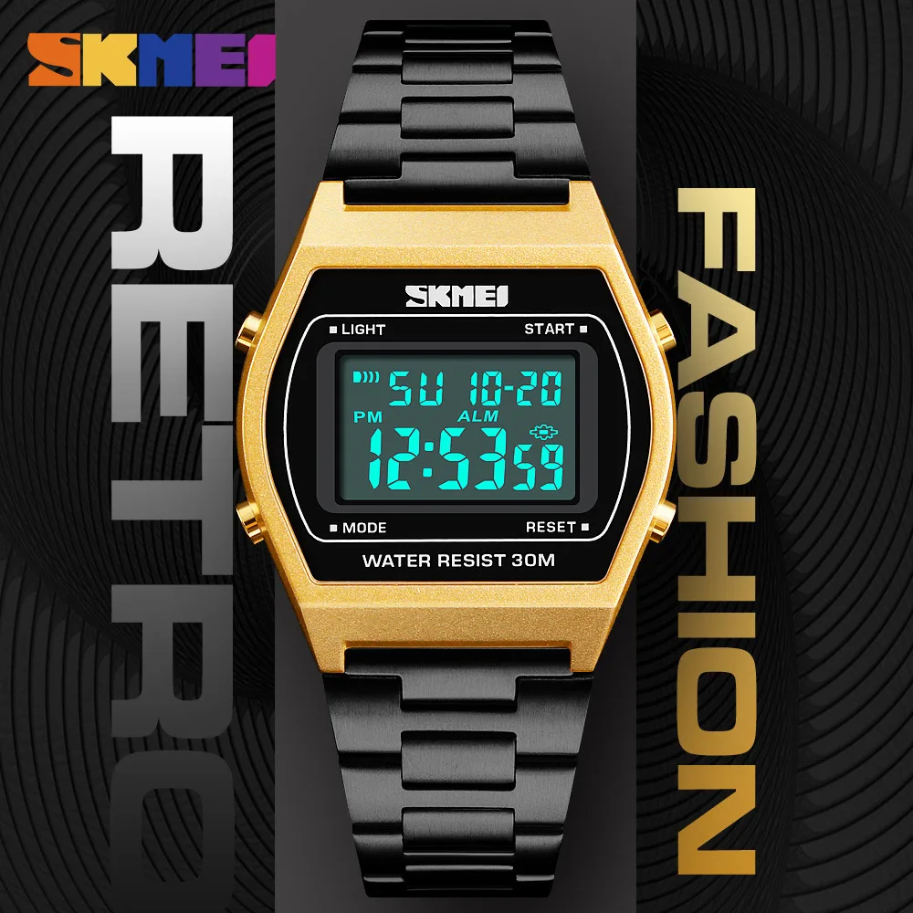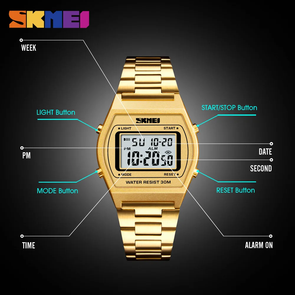 Product Name: SKMEI hombres moda al aire libre SportLuxury reloj Digital cronómetro correa de aleación trabajo 12 24 horas Saat Relogio Masculino 1328