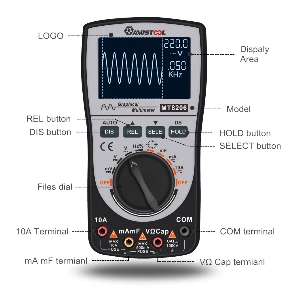 Product Name: Multímetro Digital inteligente MUSTOOL actualizado MT8206 2 en 1, probador de voltaje de corriente con gráfico de barra analógica 200k
