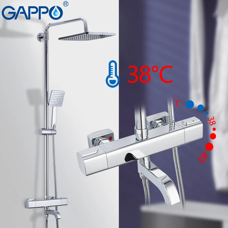Product Name: G2491 6 GAPPO grifos de ducha negros agua termostática para baño mezclador cascada grifo termostato de ducha grifo lluvia shoower