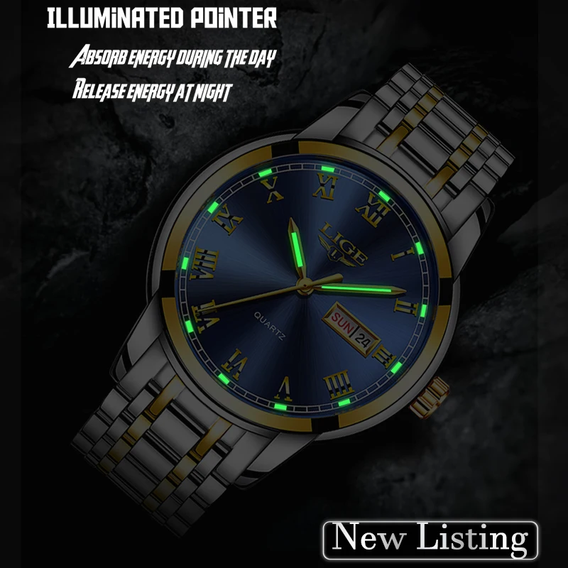 Product Name: Reloj LIGE para hombre, de moda, deportivo, cuarzo, acero, oro, para hombre, relojes de marca superior, reloj impermeable de lujo, reloj Masculino