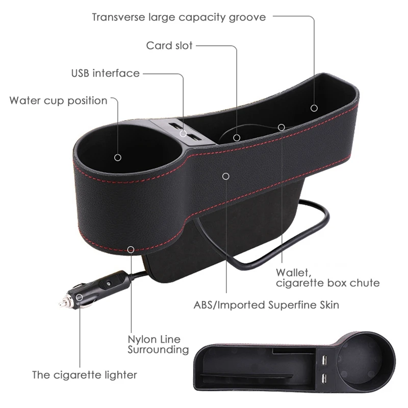 Product Name: Coche de asiento cuero Slit Pocket caja de almacenamiento Universal Auto Interior asiento del conductor orden Caja con 2 USB de carga hub