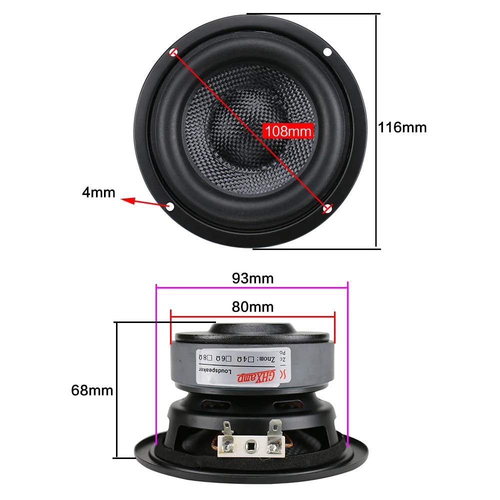 Product Name: GHXAMP 4 pulgadas Woofer Subwoofer Unidad de altavoz HIFI 4ohm 40W fibra de vidrio tejida lavabo bajo profundo altavoz magnético grande 1 pieza