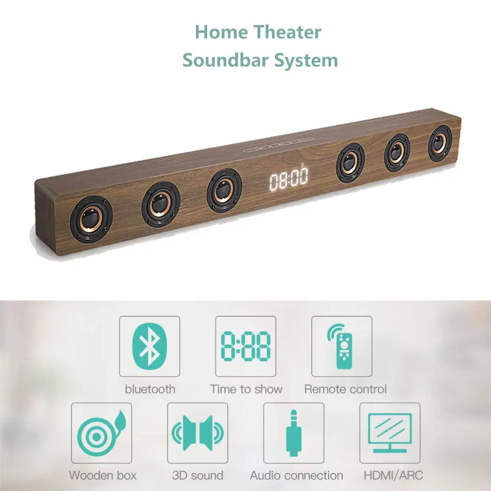 Product Name: HYASIA soporte HDMI reloj pantalla TV Soundbar Bluetooth 4,2 bar altavoz TV Control remoto para el cine en casa barra de sonido Bluetooth