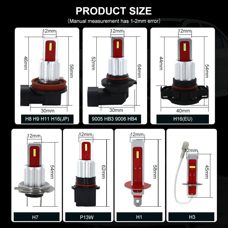 Product Name: 2 piezas Canbus 6000K 2000lm blanco amarillo cristal azul coche LED P13W bombillas para Auto luz antiniebla conducción fuente de luz 12V 24V CC