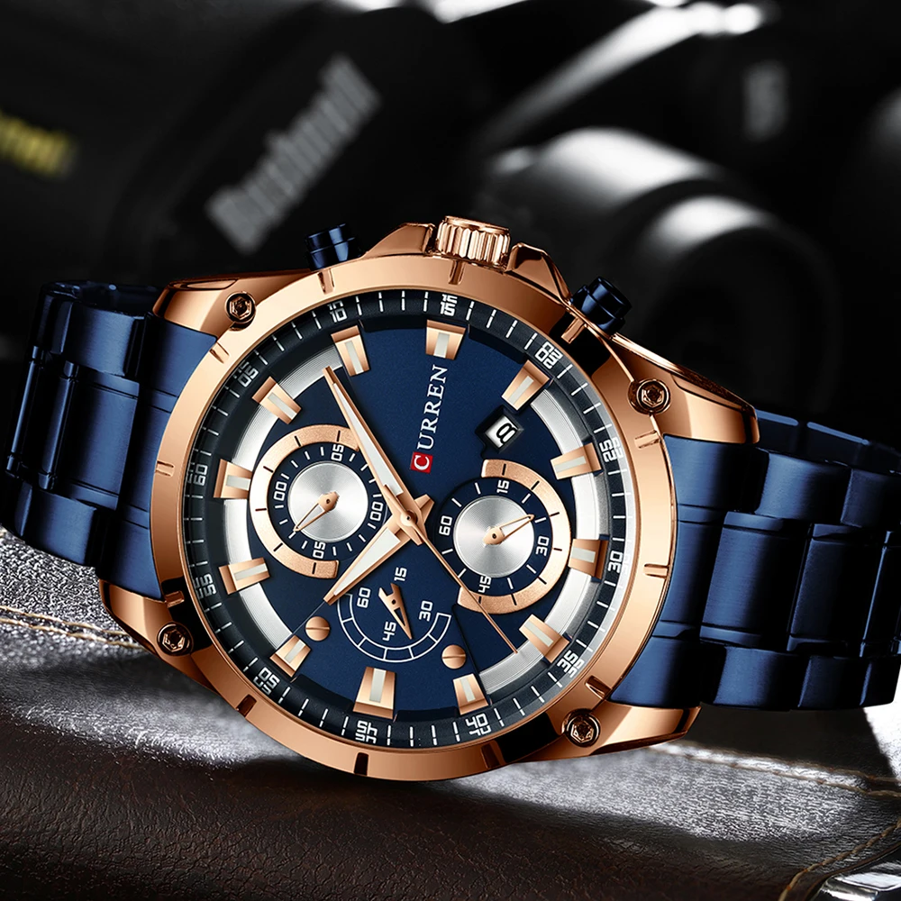 Product Name: Relojes de diseño creativo CURREN reloj de pulsera de cuarzo de lujo para hombre con cronógrafo de acero inoxidable reloj deportivo reloj masculino Relojes