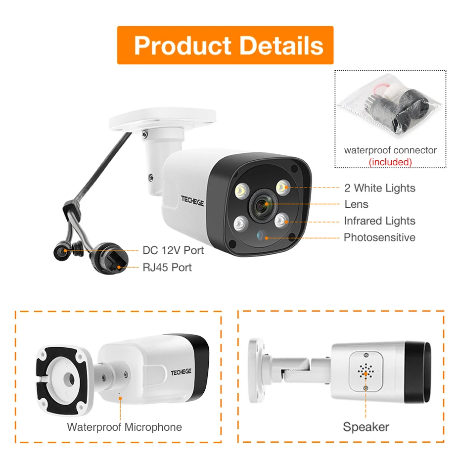 Product Name: Techege Super HD 5MP de dos vías de Audio de seguridad POE IP Cámara ONVIF detección humana exterior impermeable CCTV cámara para POE NVR