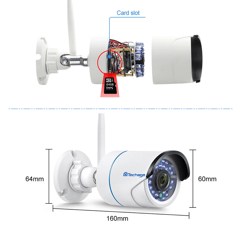 Product Name: Techage 1080P 2MP cámara inalámbrica de seguridad Audio Wifi IP Cámara IR al aire libre impermeable P2P Onvif TF tarjeta CCTV Video vigilancia