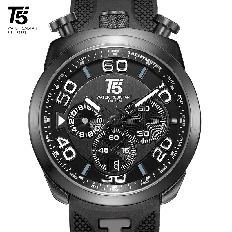 Product Name: Correa de goma T5 lujo Oro Negro masculino cuarzo cronógrafo regalo impermeable deporte hombres relojes para hombre reloj de pulsera hombre reloj