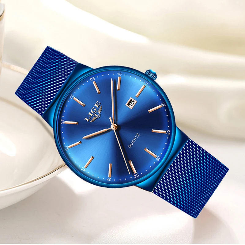 Product Name: LIGE relojes para mujer marca superior de lujo reloj de cuarzo analógico para mujer malla azul completa de acero inoxidable RELOJ DE FECHA DE MODA esfera ultrafina