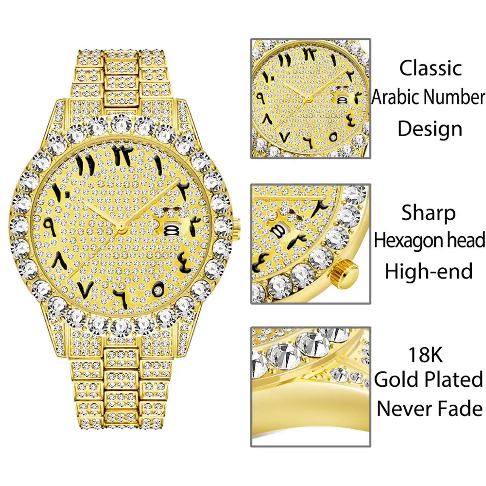 Special Offer Relojes Para Hombre con números árabes de MISSFOX reloj de lujo de primera marca para hombre, Diamante grande de oro de 18 quilates con Canlender, Reloj clásico con hielo para hombre Discount 90% Today!