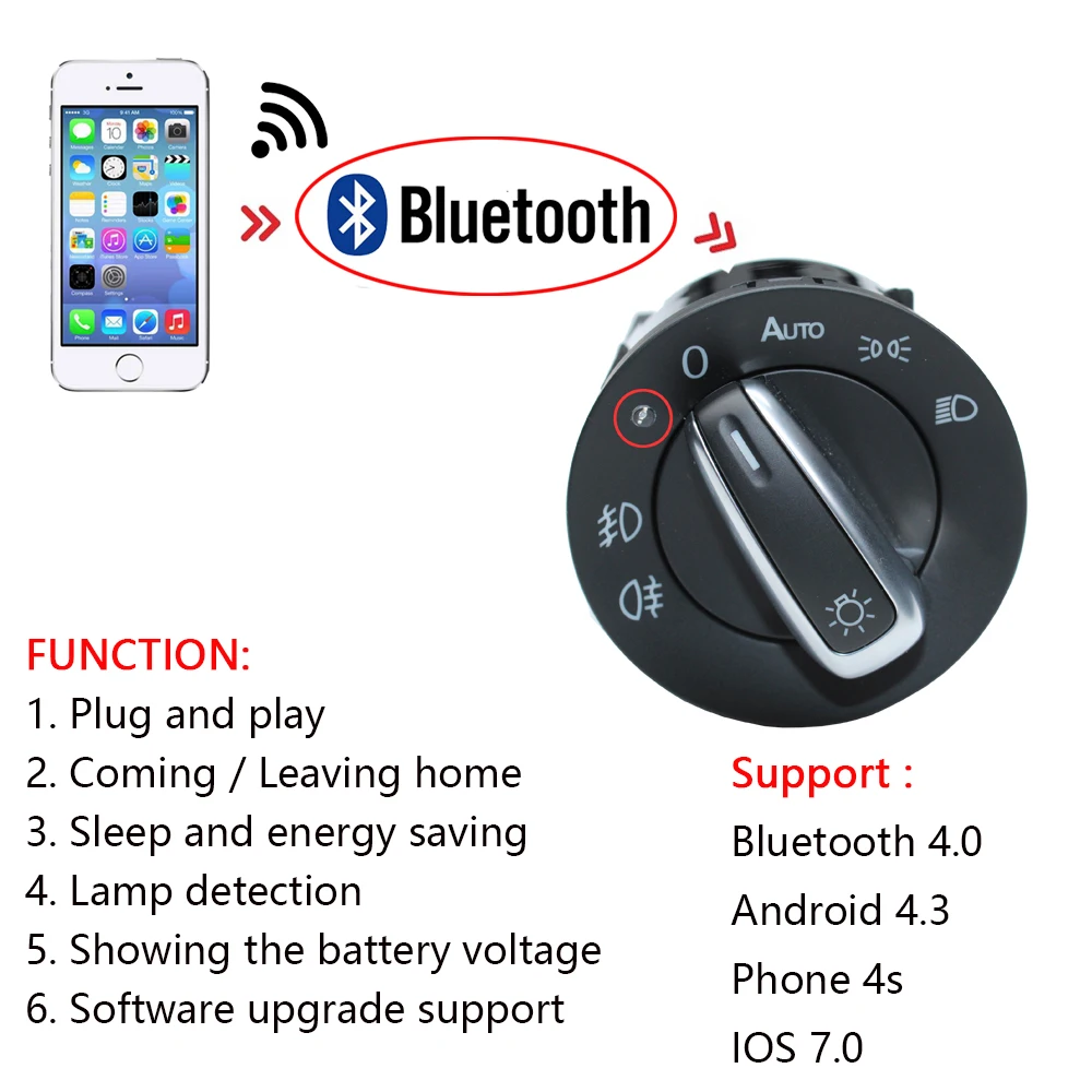 Product Name: Bluetooth AUTO faro de la cabeza de la lámpara interruptor de luz Sensor Actualización de módulo para VW Golf Jetta MK5 6 tizan Touran Passat cirocco