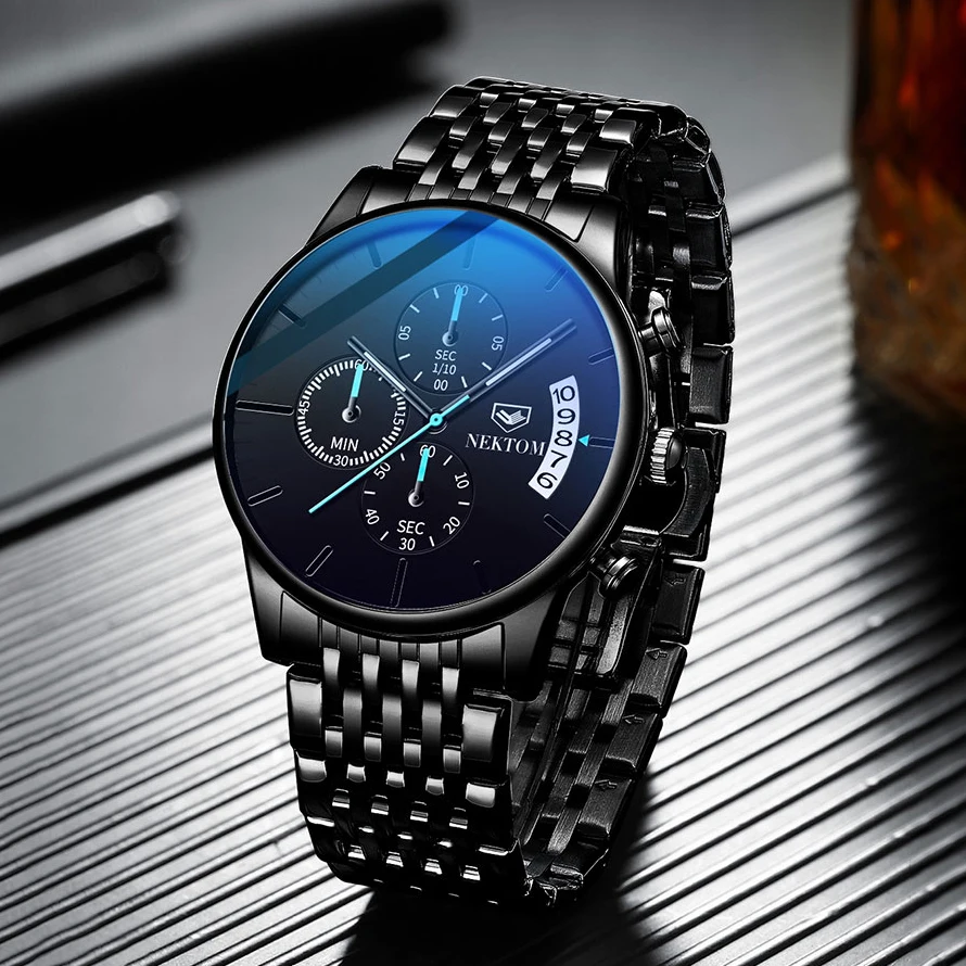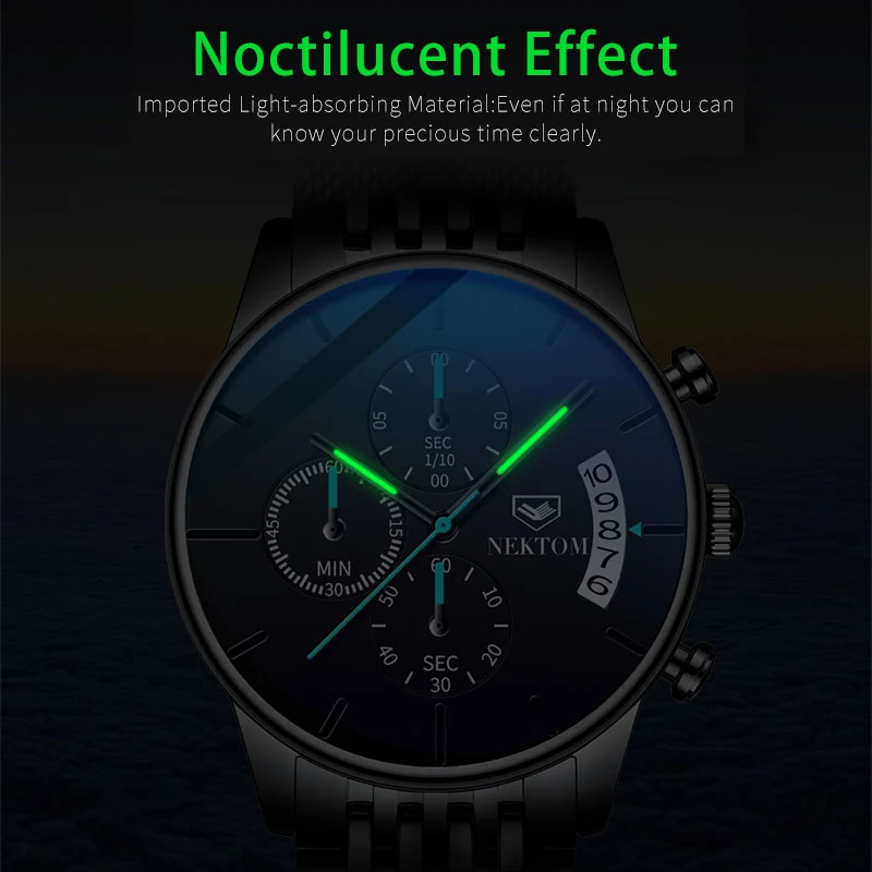 Product Name: Relojes para hombre de moda NEKTOM reloj de cuarzo de lujo para hombre reloj deportivo de malla delgada informal de acero resistente al agua reloj Masculino