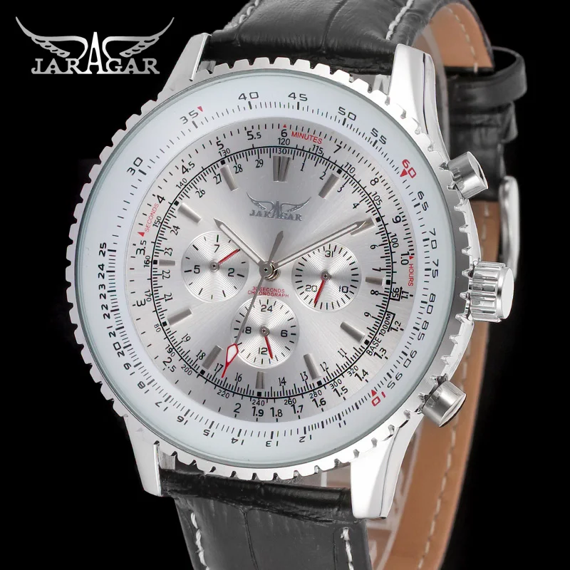 Special Offer Relojes mecánicos para hombre de lujo de marca superior Jaragar, relojes automáticos para hombre con 6 manos y correa de cuero genuino, relojes de pulsera negros con fecha automática Discount 25% Today!