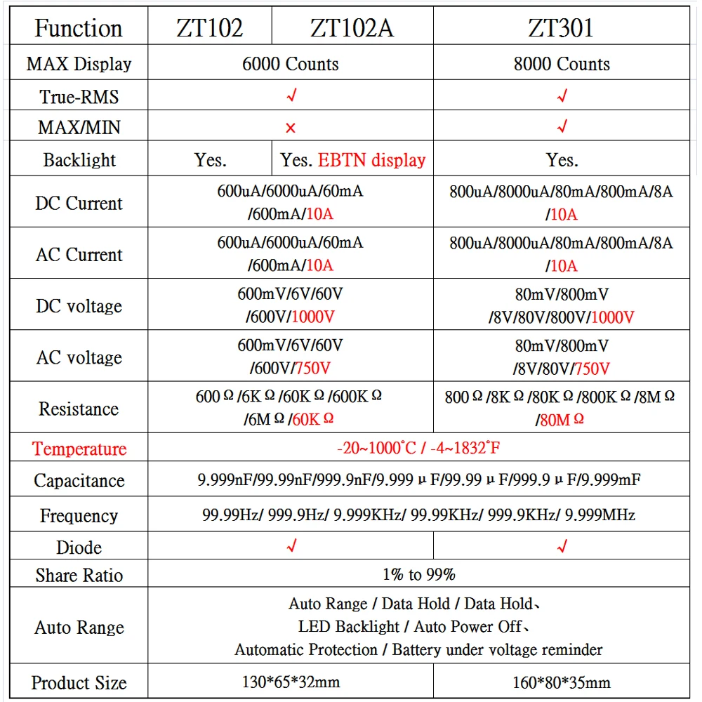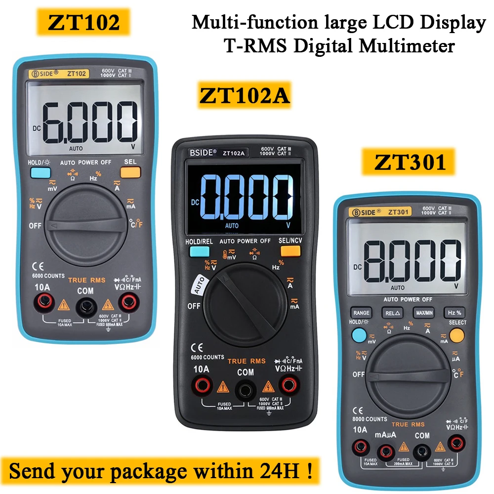 Product Name: Multímetro Digital BSIDE ZT serie de RMS verdadero Auto de la gama Multimetro amperímetro del voltímetro de La capacitancia temperatura Ohm, HZ NCV de