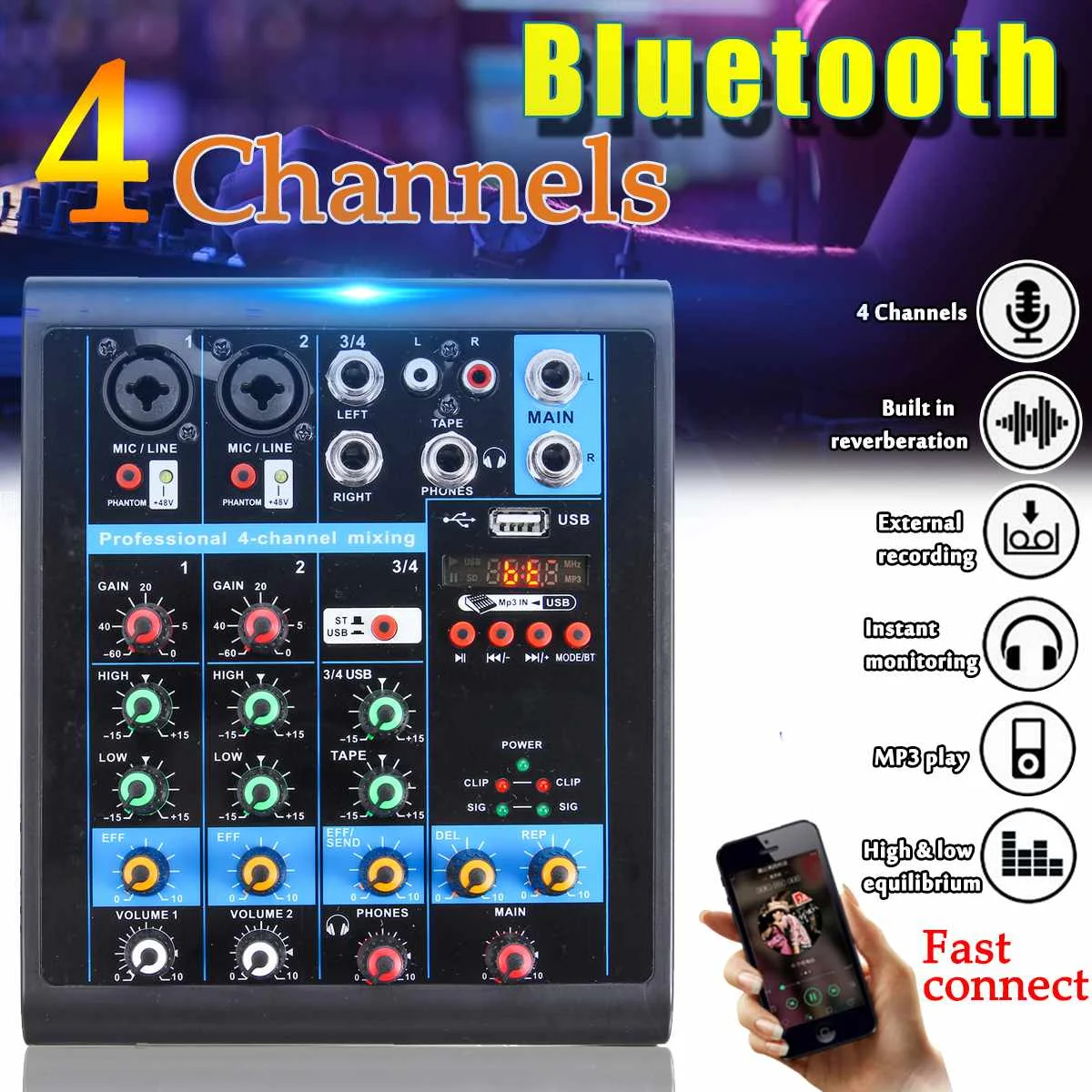 Special Offer Mini 4 canales USB mezclador portátil bluetooth MP3 en directo de Audio sonido DJ consola Karaoke computadora alimentación fantasma de 48V Discount 42% Today!