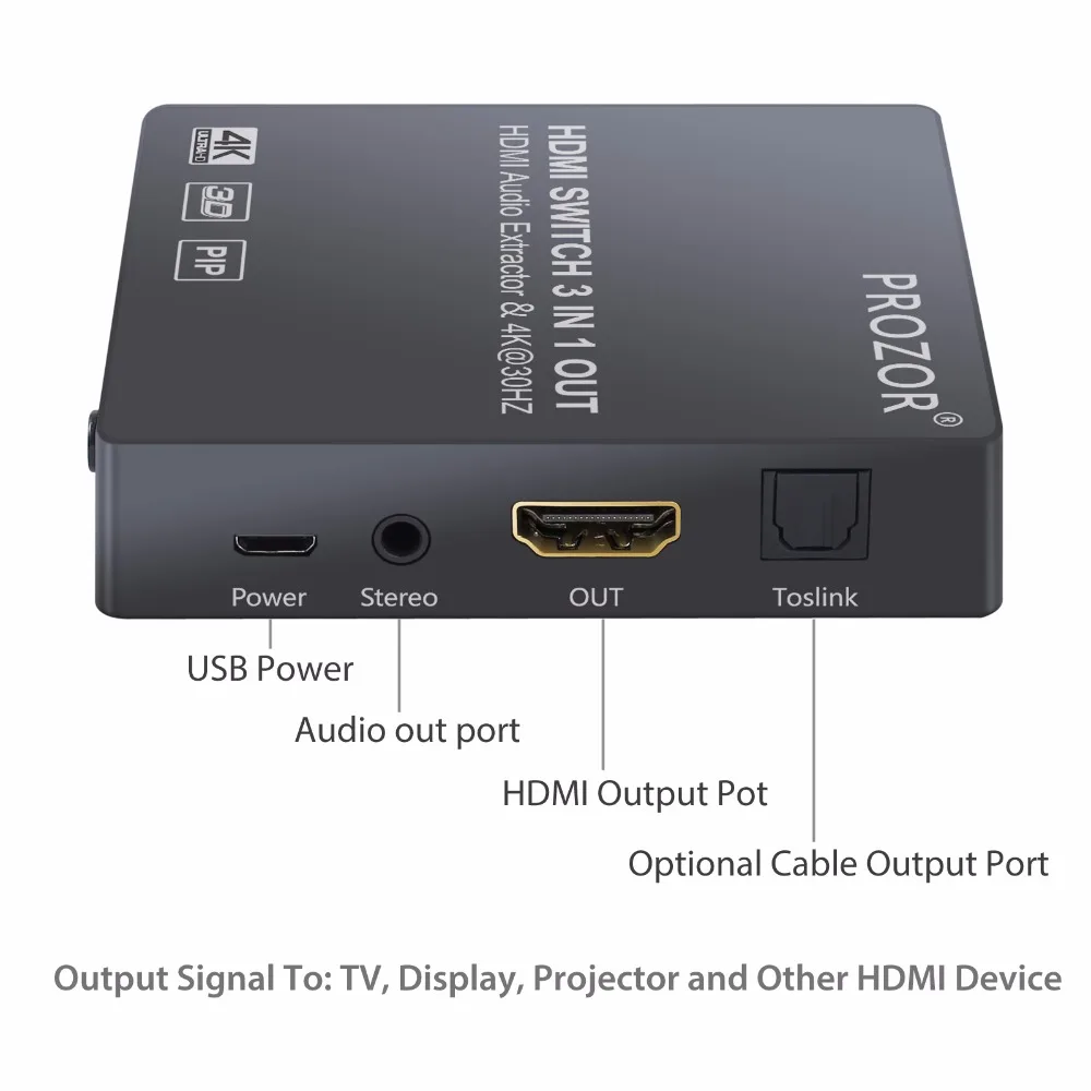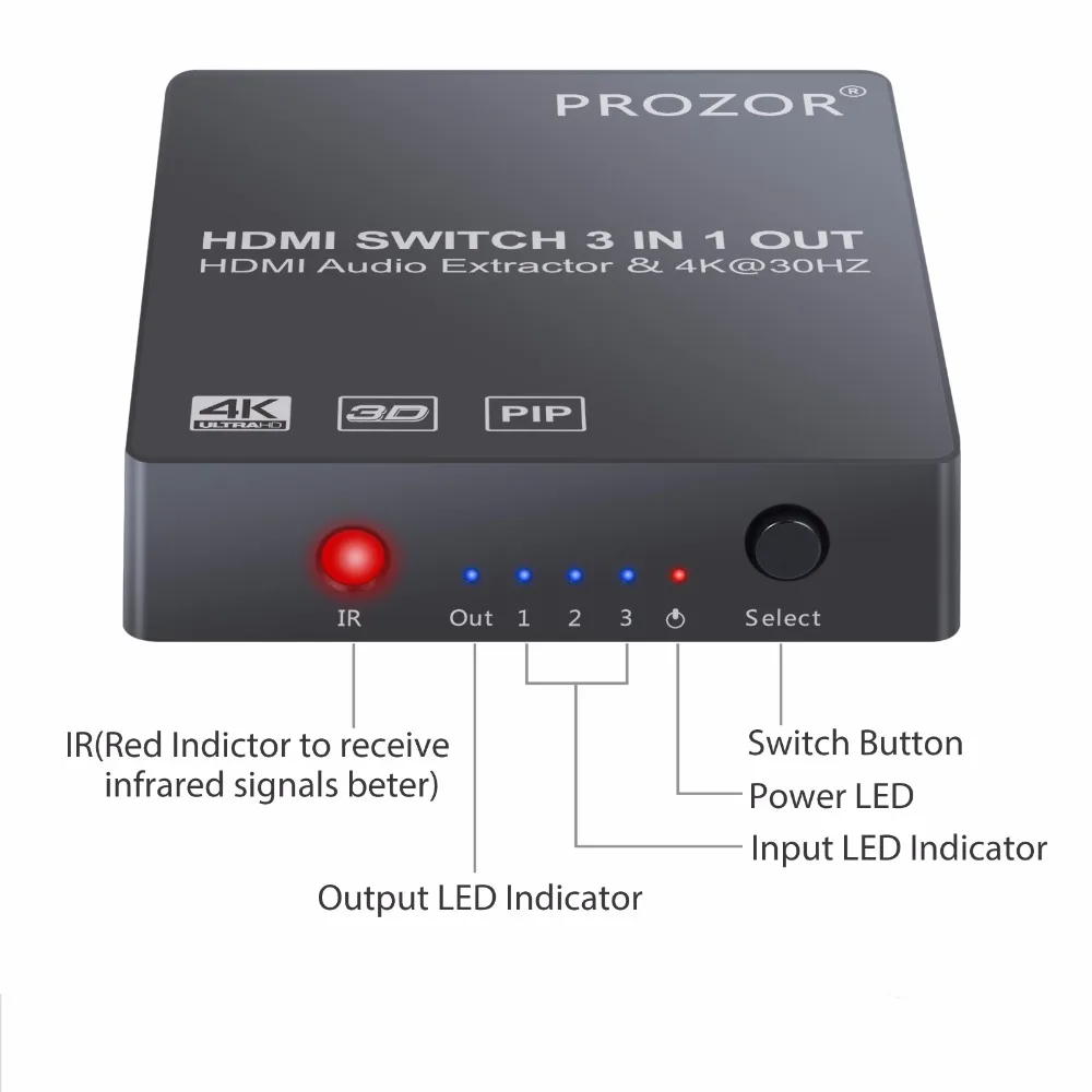 Product Name: Prozor 4K 5x1 3x1 interruptor HDMI con función PIP 3D 1080P conmutador con Audio Extractor óptico Toslink SPDIF (5x1 sin PIP)