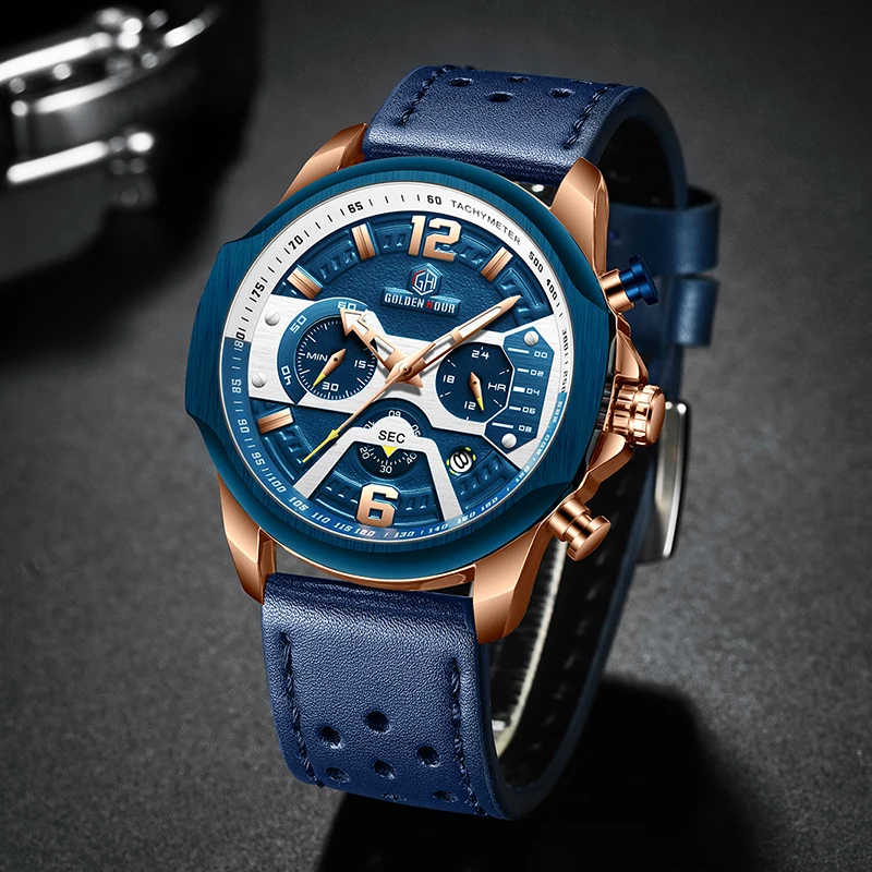 Special Offer Relojes para hombre reloj de cuarzo azul de lujo para hombre reloj de pulsera de cuero con cronógrafo de deporte grande reloj de pulsera para hombre reloj Masculino Discount 92% Today!