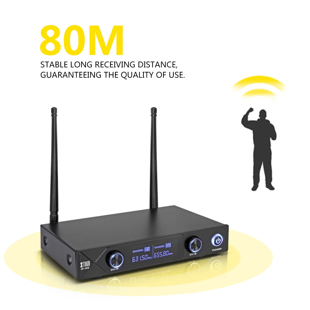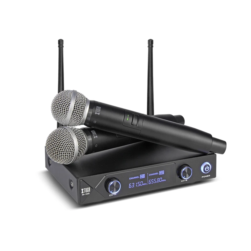 Product Name: XTUGA Audio Profesional UHF A 100 2 canales sistema de micrófono Inalámbrico UHF inalámbrico Karaoke party bar calidad