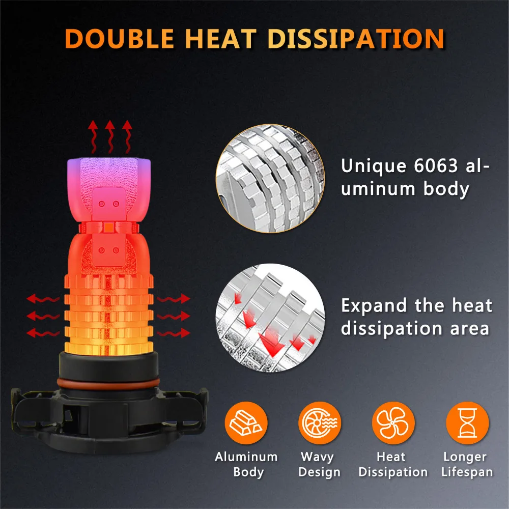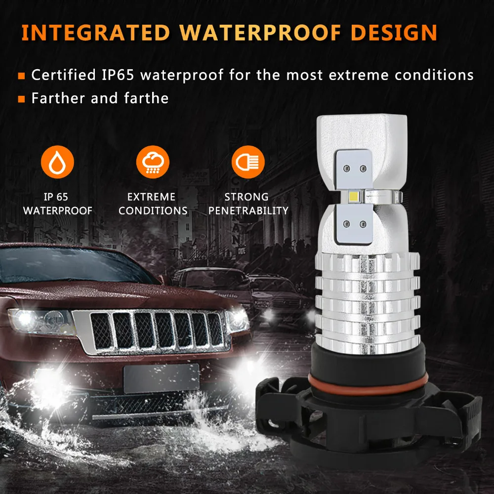 Product Name: 2 piezas PSX24W LED H16 Luz de niebla H8 H11 H10 9145 HB3 9005 HB4 9006, 2504 de 5202 Bombillas LED DRL auto lámpara 1500LM 6000K blanco DC12 24V