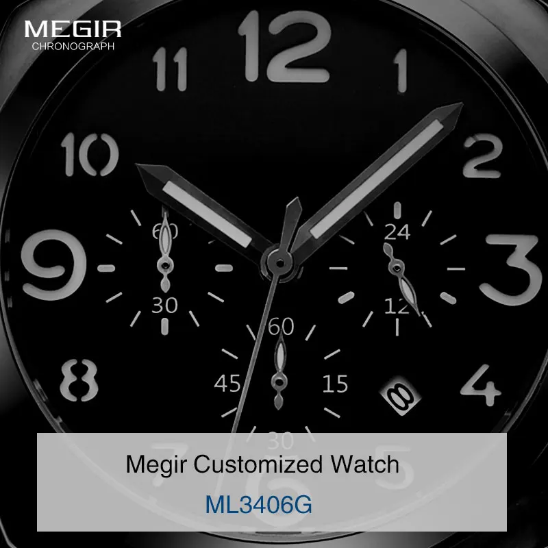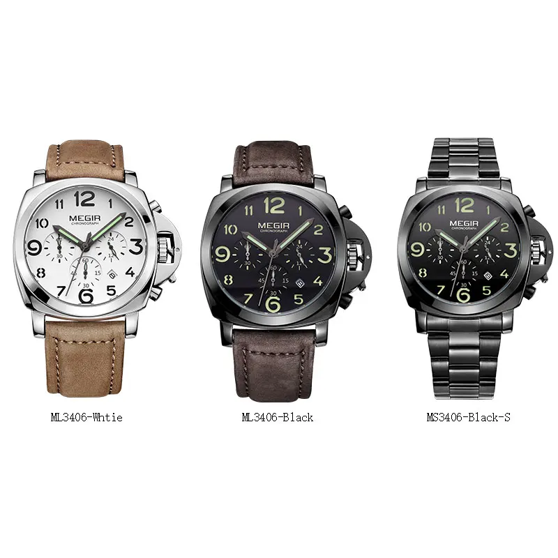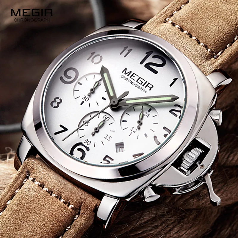 Product Name: Relojes de cuarzo luminosos con cronógrafo Megir para hombre con fecha calendario reloj de pulsera con correa de cuero militar analógico redondo Hombre ML3406G